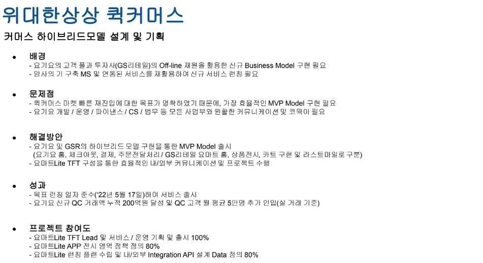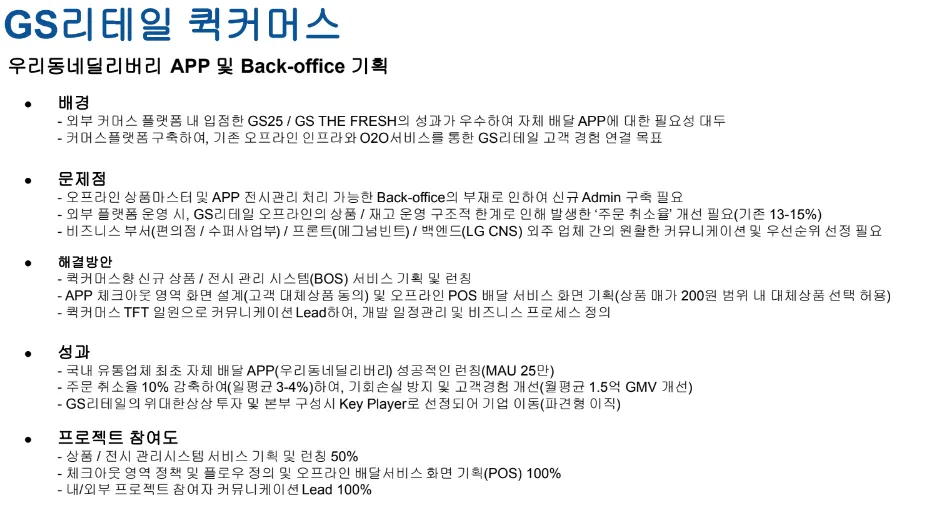 경영학 전공 → GS 리테일 영업관리 → 위대한 상상 (요기요) Product 서비스 기획 커리어를 거쳐 쿠팡에 입사