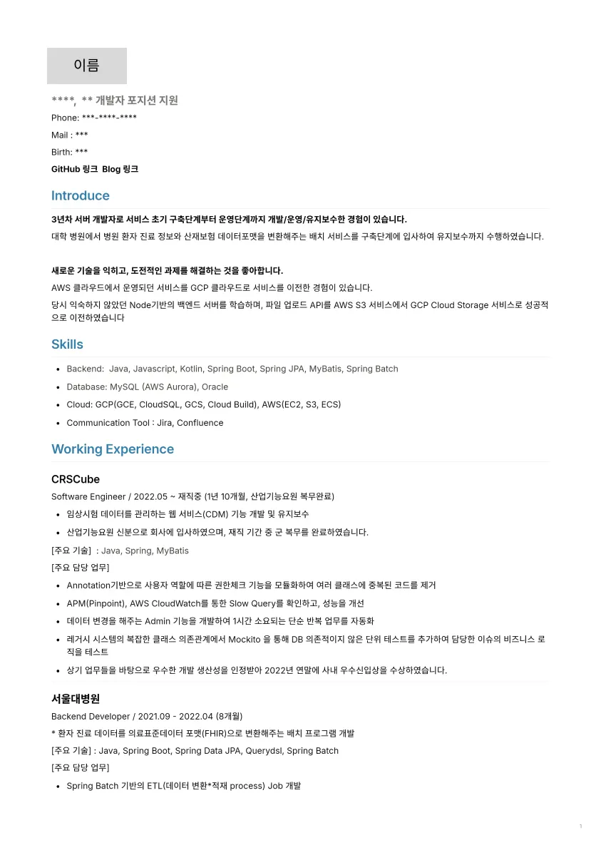 최초로 여기어때 합격 이력서를 여러분들에게만 무료로 공개