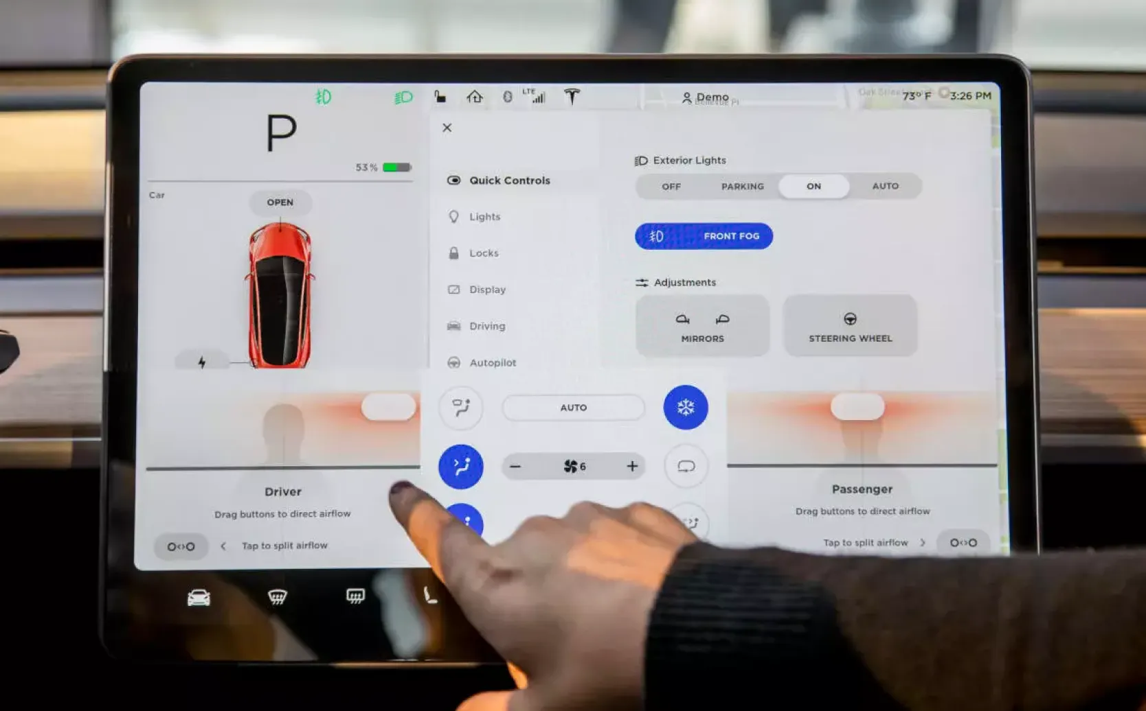 Tesla Model 3 의 대시보드는 완전히 터치식 입니다.운전자는 버튼을 사용하지 않고도 자동차의 대부분의 기능을 제어할 수 있습니다.