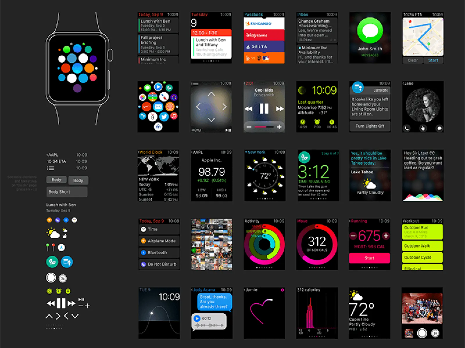Apple Watch에는 기기 우측에 있는 버튼을 쓰지 않는 인터페이스가 많습니다. 사용자는 시계를 밀기, 탭하기, 기울이기 등의 다양한 제스처를 사용하여 장치를 조종할 수 있습니다.